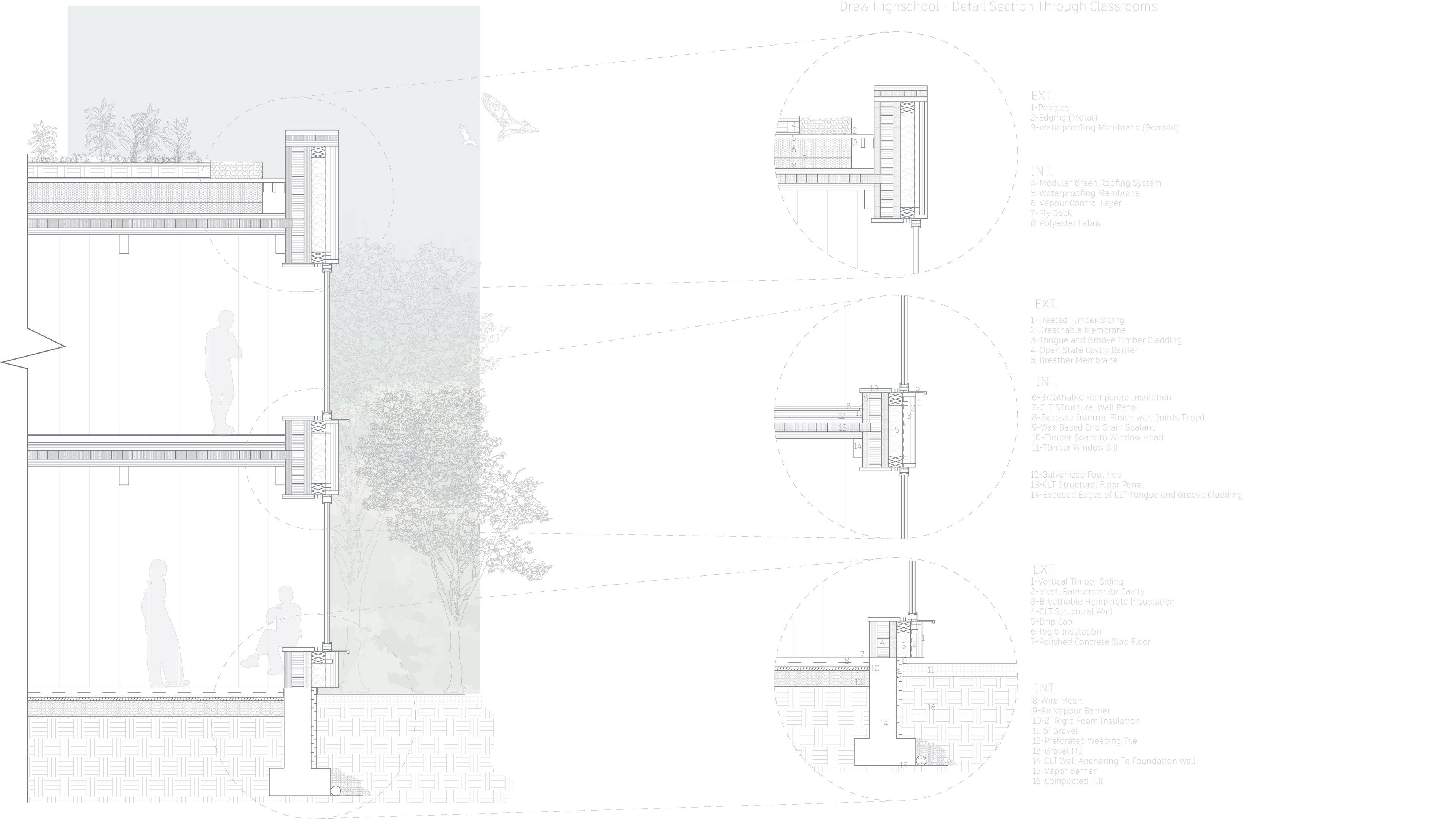 Culmination of semester-long research into sustainable building systems for public education buildings. Focus was on applicable construction techniques and materials best suited for high school staff and students. Being in an institution focused on education and encouraging a healthy learning environment should also mean a healthy building.